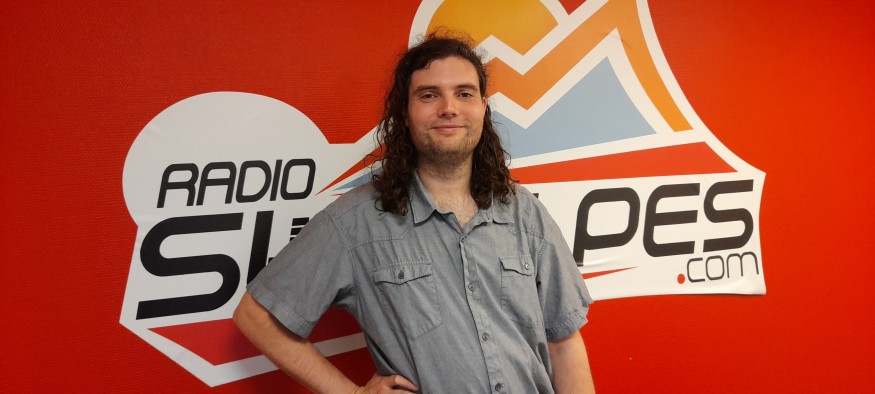 Photo : Guillaume, du haut de ses 1 mètres 92, dans les studios de SunAlpes Radio.