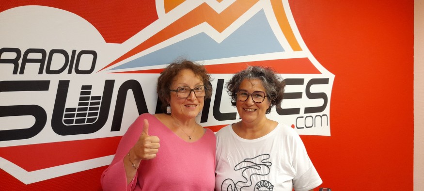 Photo : Hélène (à droite) et Francine dans les studios de SunAlpes Radio.