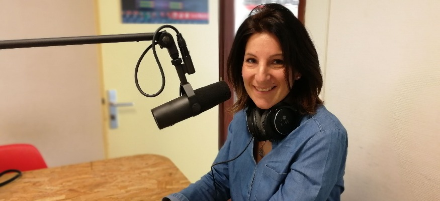 Photo : Coralie dans les studios de SunAlpes Radio