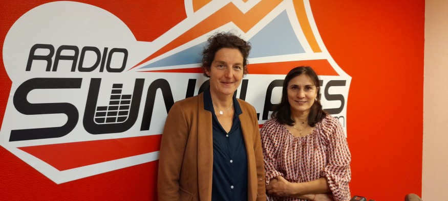 Photo : Caroline (à gauche) et Corinne (à droite) pendant l'enregistrement de l'émission, dans les studios de SunAlpes Radio.