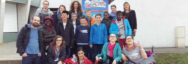 Photo : Les élèves du dispositif ULIS du collège Beauregard avec leurs enseignants, éducateurs, AVS devant les locaux de Sunalpes.