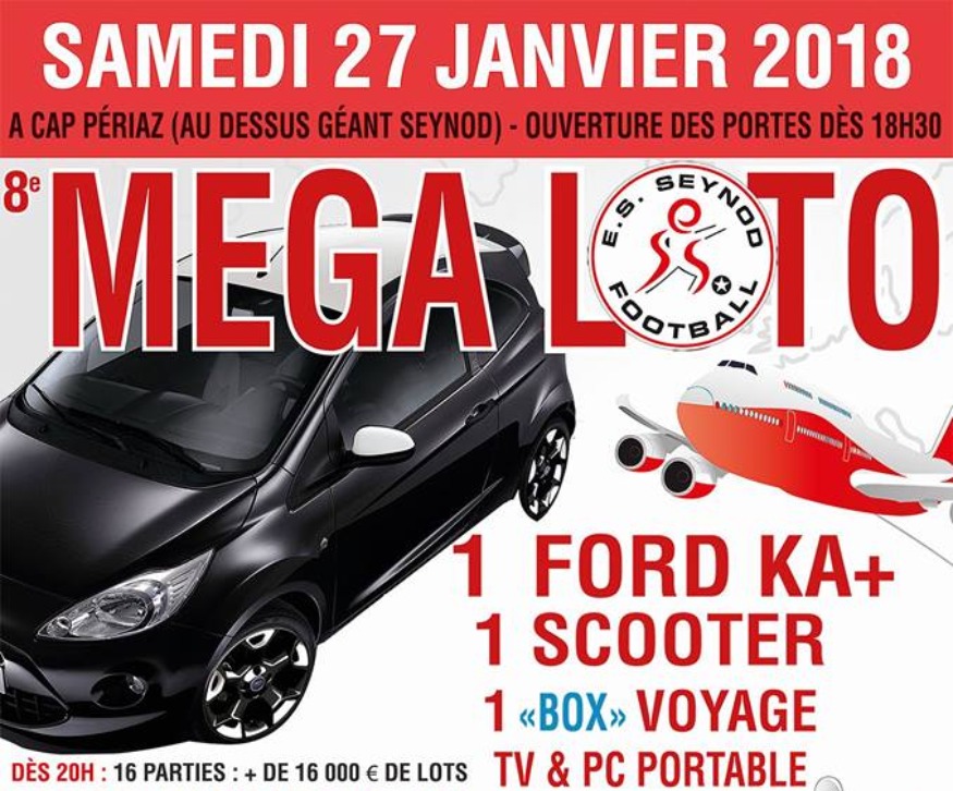 Tentez de gagner vos cartons pour participer au 8ème MEGA LOTO organisé par l'ES SEYNOD FOOT le Samedi 27 Janvier. + de 16 000 euros de lots à gagner dont 1 FORD KA PLUS WHITE.